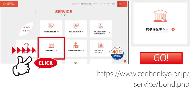 (詳しくは、全国弁護士協同組合連合会のホームページに掲載している民事保全ボンドのパンフレットを参照してください。)